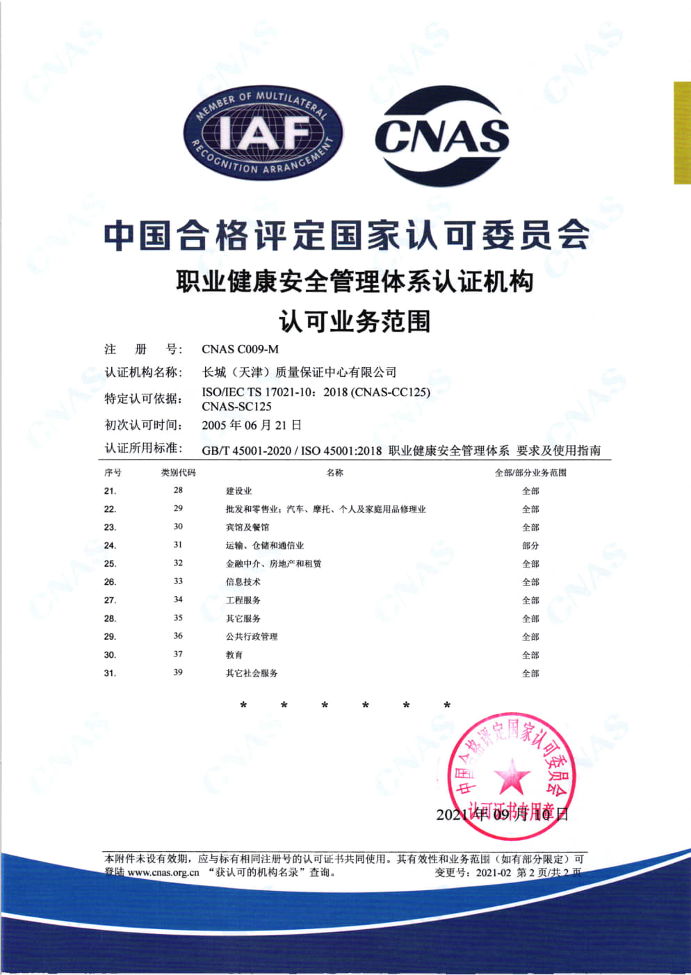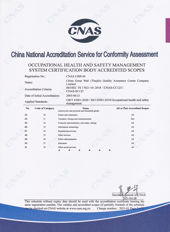 • 職業健康安全管理體系認證機構認可業務范圍英文2