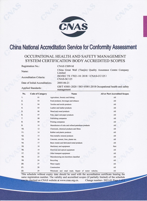 • 職業健康安全管理體系認證機構認可業務范圍英文1