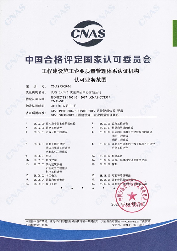 • 長城中心管理體系認證機構認可證書 中文
