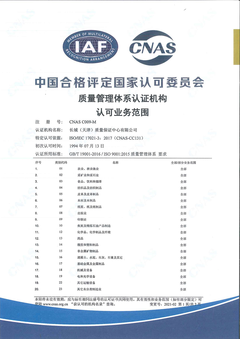 長城(天津)質量保證中心有限公司(簡稱“長城中心”),出資人為天津國興資本運營有限公司,是國有法人獨資企業。長城中心是經國家認證認可監督管理委員會批準認證資格、經中國合格評定國家認可委員會批準CNAS認可資格的具有獨立法人資格的第三方認證機構,是中國認證認可協會的常務理事單位。 長城中心1993年首批獲得國家認可并批準注冊,具備國際認證認可論壇IAF國際互認資格,現已發展為遍涉全國認證業務的大型綜合性認證機構之一。 長城中心具有質量管理體系、環境管理體系、職業健康安全管理體系、食品安全管理體系、危害分析 [查看詳情]