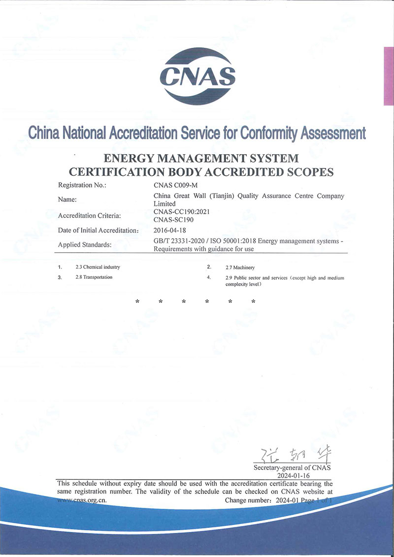 • 能源管理體系認證機構認可業務范圍中文