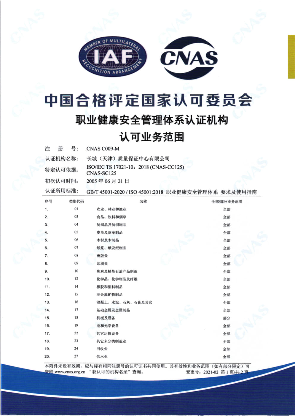 • 職業健康安全管理體系認證機構認可業務范圍中文2